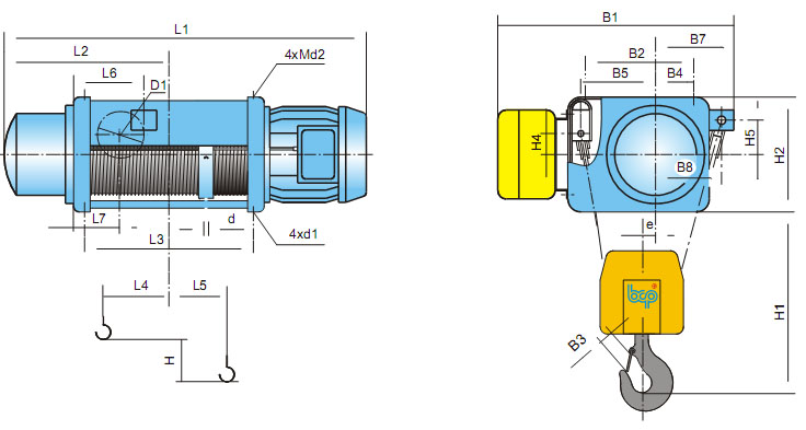 При замовленні талі споживач може вибрати такі варіанти виконання: монтаж на лапах чи пальцях. Різні швидкості підйому від 1м/хв і до 16м/хв, у тому числі й кілька одночасно. Різну кратність поліспасту 1/1; 2/2; 2/1; 4/2; 4/1 і т.д. напруги живлення та способи управління: провідний або бездротовий.