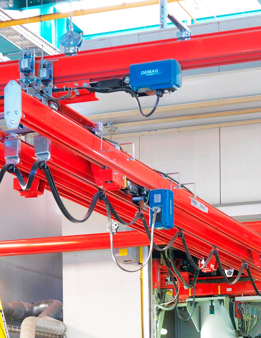 Консольні та висувні крани Demag KBK — це ефективні рішення для переміщення вантажів у виробничих цехах, складських приміщеннях та на робочих ділянках, де стандартний крановий шлях не забезпечує повного доступу до всіх зон. Вони є частиною модульної кранової системи Demag KBK, що дозволяє організувати гнучку систему внутрішньоцехового транспортування та оптимізувати використання робочого простору.