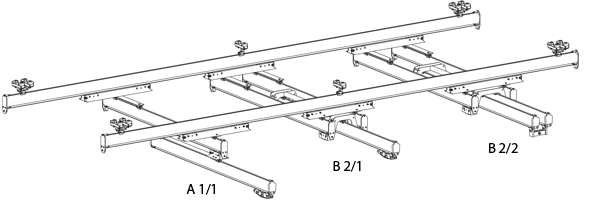 - Балки можуть висуватися в один або обидва боки за межі ширини підкранової колії