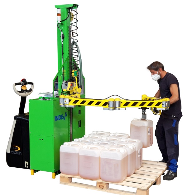 Liftronic Mobile is an INDEVA Lift Assist Device designed to be installed on a pallet truck so that it can be moved and used wherever it is needed.
