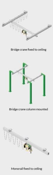 Модель Liftronic® Easy, що встановлюється на рейці, ковзає по рейках, встановлених на підвісному мосту. Вона підходить для покриття великої робочої зони.