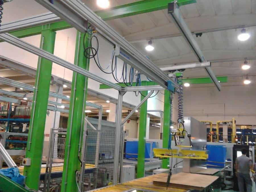 A rail mounted model Liftronic® Easy slides along overhead bridge mounted rails. It is suitable for covering a large work area.