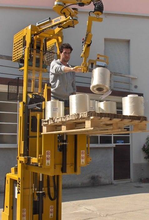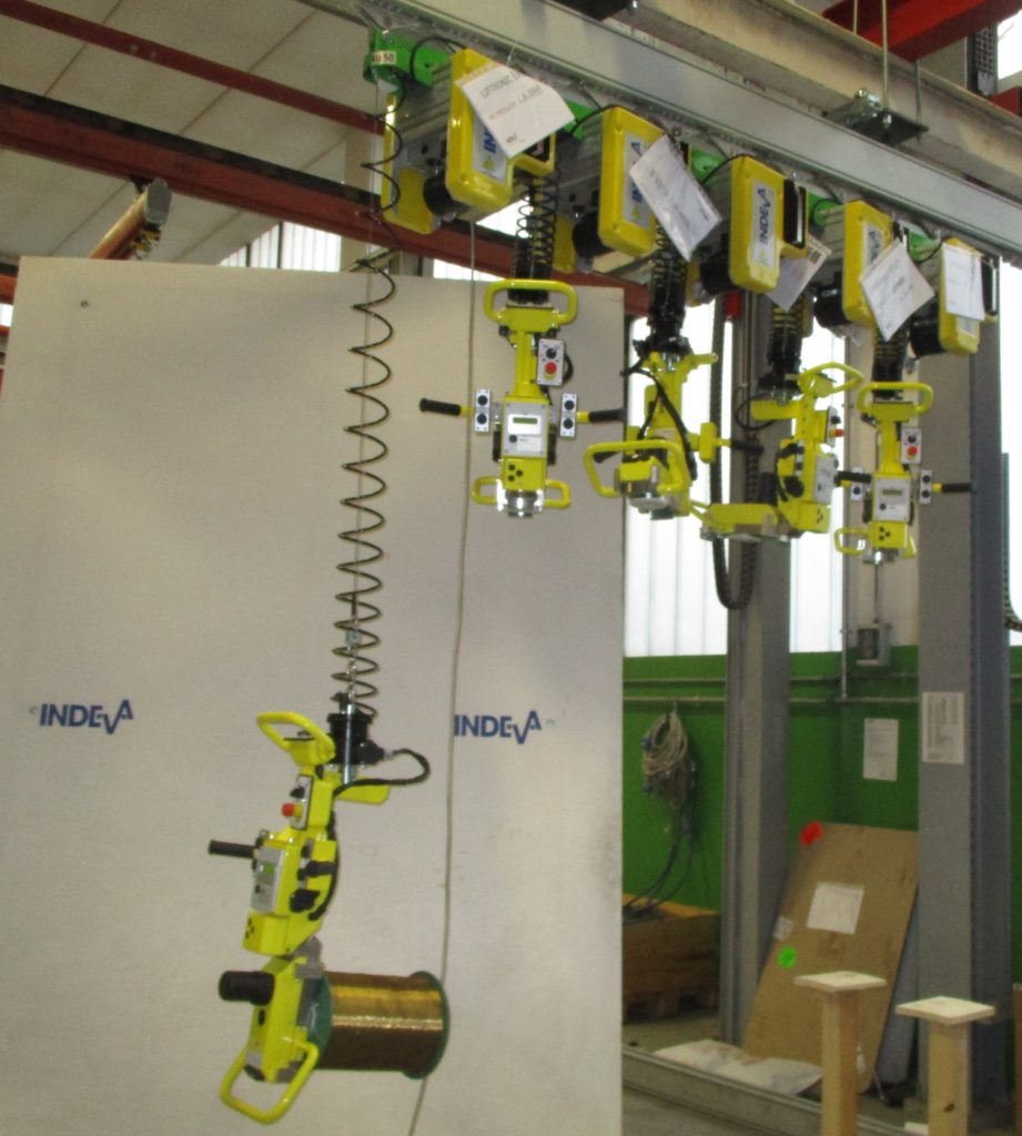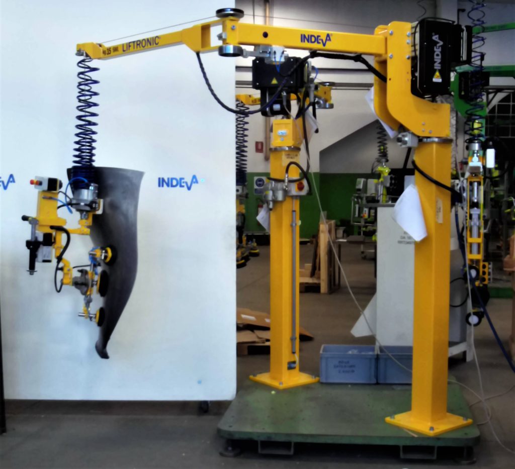 INDEVA ® Liftruck – це промисловий маніпулятор, що включає штабелер для перенесення піддонів з котушками, INDEVA ® Liftronic ® із шарнірним маніпулятором та орбітальну головку інструменту для обробки котушок. Необхідний у текстильній промисловості на ділянках текстурування, прядіння та ткацтва для навантаження котушок заввишки до 5 м із котушками вагою до 40 кг. Одна людина може виконати весь робочий цикл: зібрати піддони зі складу та перенести їх у котушку, розмістити котушку перед поворотом на 90°, зібрати та перенести всі труби та розділити заготовки коробок. Оператор може швидко і точно підібрати та звільнити котушки за допомогою орбітальної головки інструменту з розширювальним патроном. Звільнення дозволяється лише тоді, коли котушка знаходиться на штифті. Електронний балансувальник INDEVA ® забезпечує плавне, швидке та точне поводження з котушками. INDEVA ® Liftruck також може використовуватись для обробки картонних коробок за допомогою вакуумного захвату.