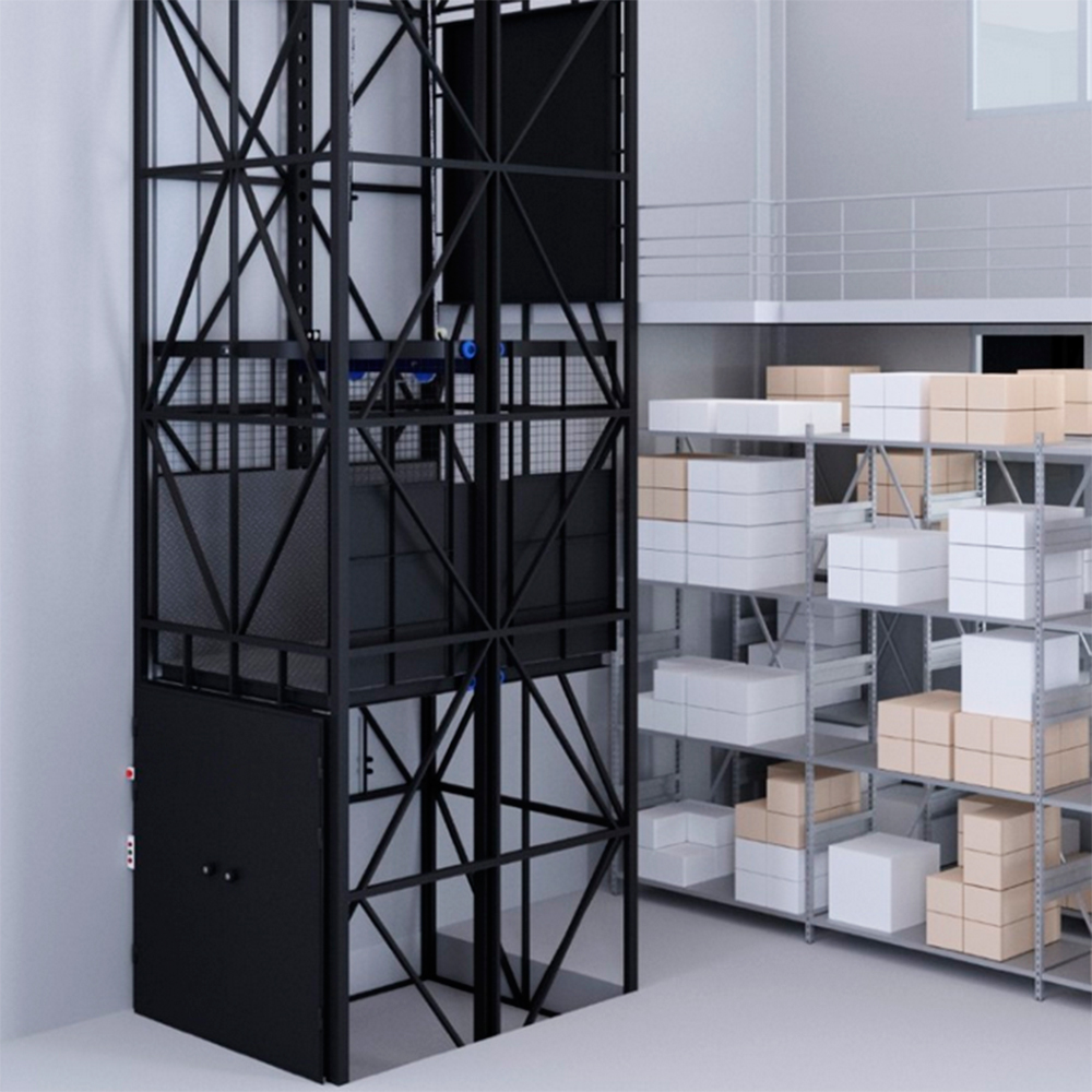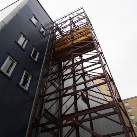 При верхньому розташуванні підйомний механізм розкріплюється вгорі шахти на стіни, якщо це дозволяє здатність несучих стін, або на верхньому перекритті шахти. При необхідності можливе виготовлення та монтаж металевої конструкції для розподілу навантаження на всі стіни шахти. При нижньому розташуванні механізм монтується в приямці або за габаритами шахти. Габаритні розміри вантажних платформ, розташування вантажопідйомних механізмів (верхнє або нижнє) та кількість проміжних зупинок узгоджуються при оформленні замовлення. Шахтний підйомник обладнаний уловлювачами, які є системою з двох страхувальних тросів, розтискних пружин і клинових блоків. При ослабленні чи обриві основного троса пружини впливають на блоки, а ті своєю чергою заклинюють страхувальні троси. В результаті кабіна не падає, а висне на двох аварійних тросах. |