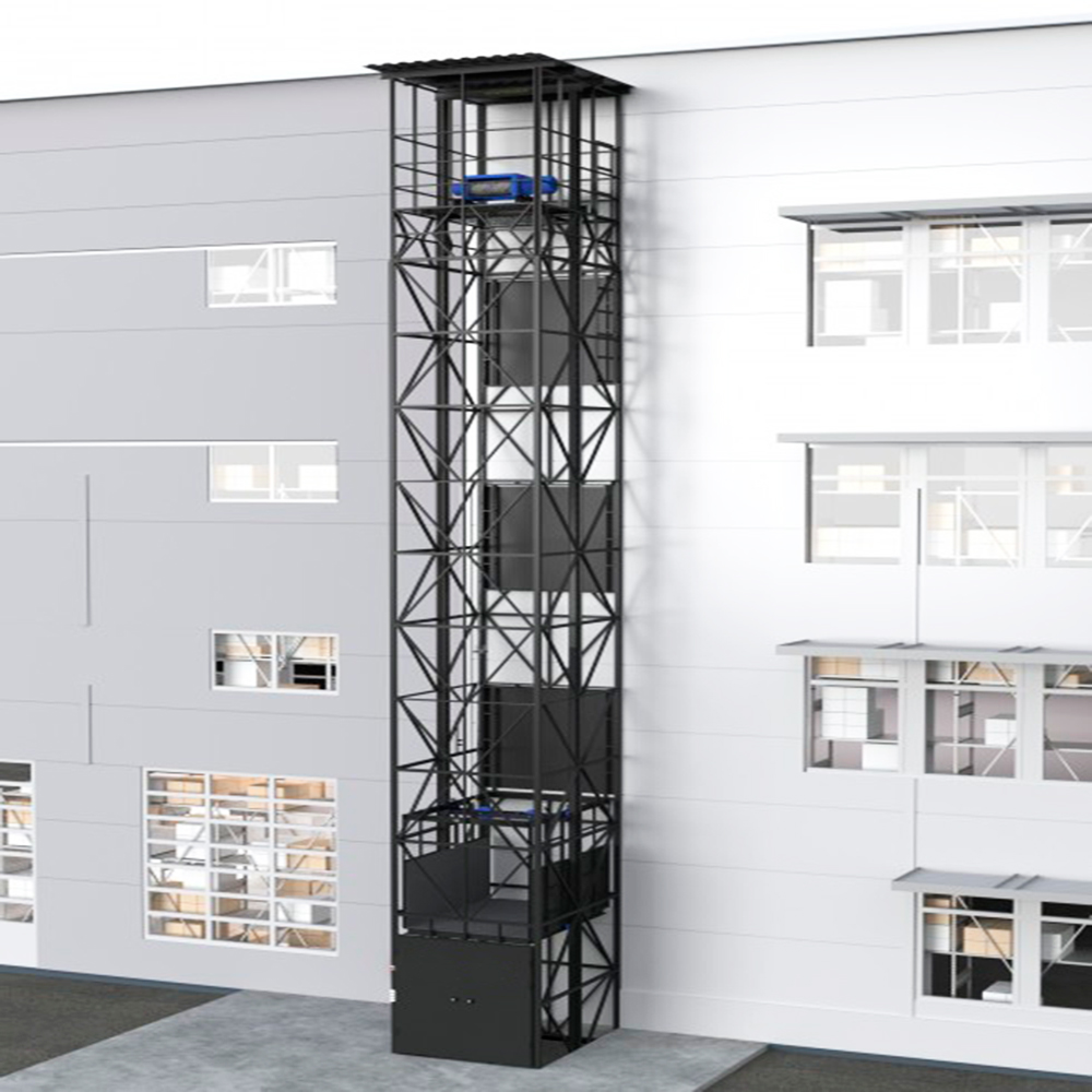 В отличие от грузового лифта, пульт управления шахтным подъемником не располагается внутри кабины, а находится снаружи подъемника, поскольку шахтный подъемник предназначен исключительно для перевозки грузов. Это позволяет перемещать груз между этажами без сопровождающего лица. Направляющие подъемника сборные, закрепляющиеся к стенкам несущей шахты. Грузовая кабина представляет собой закрытую конструкцию, оборудованную дверями. Шахтный подъемник может иметь как верхнее, так и нижнее расположение механизма подъема. |