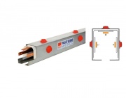 Троллейный токоподвод закрытого типа (шинопровод в пластиковом коробе с шинами внутри).Троллейный шинопровод закрытого типа – более совершенная конструкция для подвода питания к грузоподъемному оборудованию, токоведущие шины находятся в закрытом коробе. Это обеспечивает защиту от попадания пыли, осадков, поражения электрическим током. Для более надежной защиты дополнительно применяются специальные шторки, которые закрывают прорезь для перемещения токосъемника (каретки). Степень электрозащиты от IP13 до IP44 |